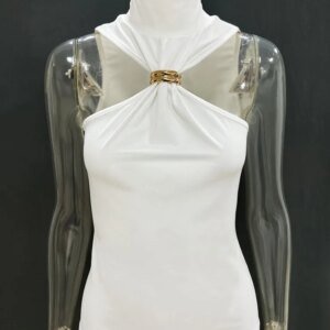 Mozision col roulé basique tricot débardeurs femmes gilet pulls anneau en métal Camisole sans manches maigre tricoté hauts Y2K haut court