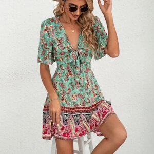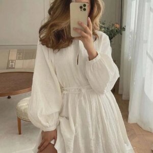 Robe en mousseline de soie, manches courtes, coupe cintrée