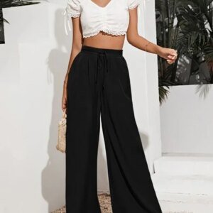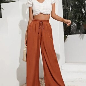 Pantalon ample d’Ă©tĂ© en coton et lin