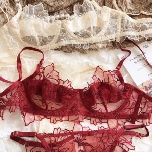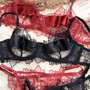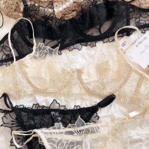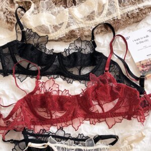 Ensemble de sous-vĂȘtements en dentelle brodĂ©e de fleurs